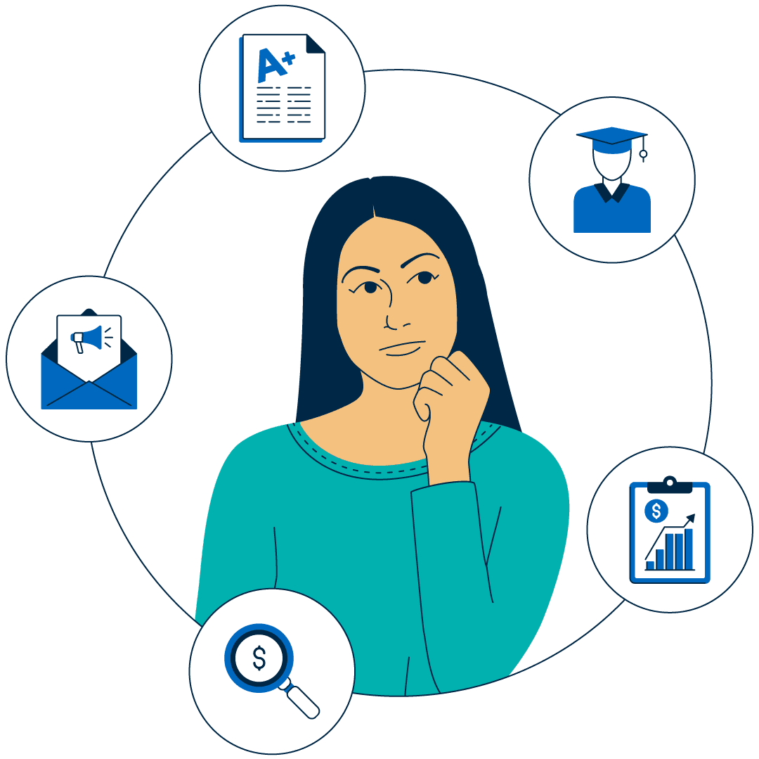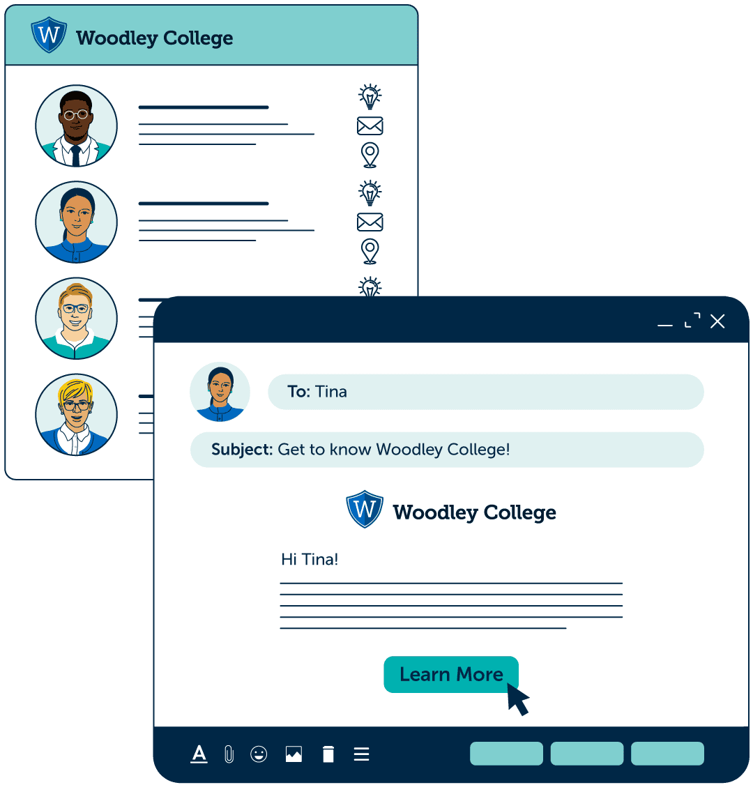 We collect and share a variety of student data points including contact information, location, desired degree level, area of interest, and more. This information helps you not only qualify right-fit leads, but also personalize your outreach to students.