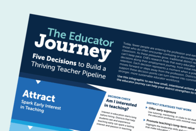 - Teacher Morale Collaborative: Participate in EAB’s Teacher Morale Collaborative to focus your efforts and make progress on teacher morale initiatives through a series of guided workshops with peers.