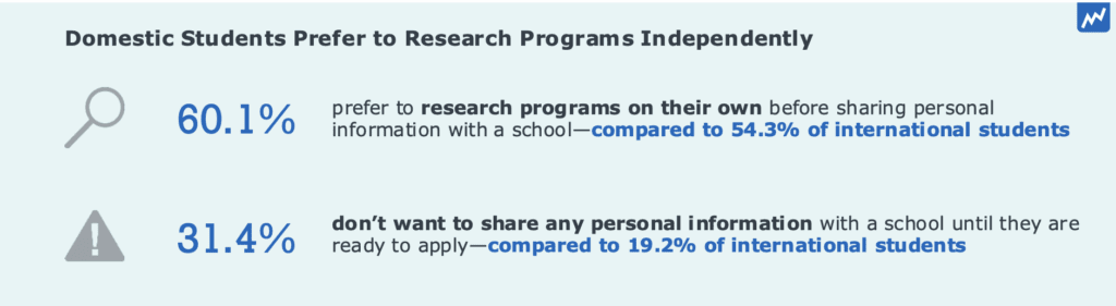 This year, we saw the first real dip in international graduate enrollment since the pandemic, due in large part to immigration and travel restrictions imposed by the administration. A strong domestic graduate enrollment strategy is no longer a temporary focus but a long-term priority as competition for the domestic pool continues to intensify. Both schools that have historically relied on global audiences and those that have always focused on domestic students alike are setting their sights on domestic audiences. Winning domestic enrollments starts with understanding what U.S. students want, what turns them away, and what they need to feel confident in enrolling.