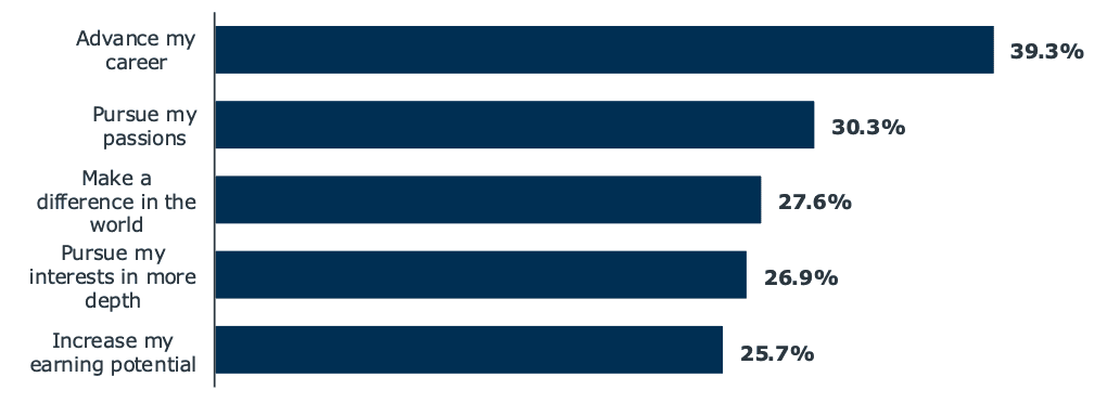 Asked of students who are currently enrolled or planning to enroll in the next 2 years. Top five responses shown.