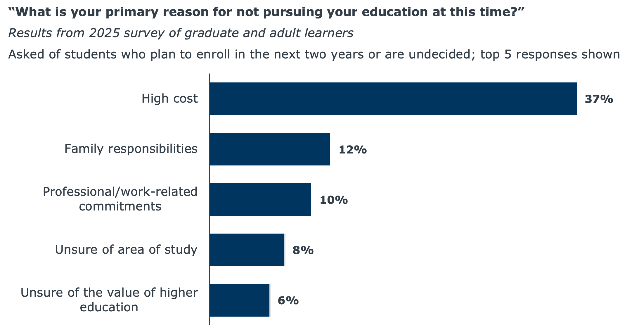 There’s also a growing overlap in mindset. Undergrads are starting to care more about outcomes and return on education, something we’ve long seen with graduate students and other adult learners. But for grad students, you really have to lean into messaging about support services. They often spend more time talking themselves out of enrolling than getting excited about the benefits. This tells us that your recruitment strategy needs to include clear, proactive messaging about how your institution will support them and help them succeed while enrolled in your program.
