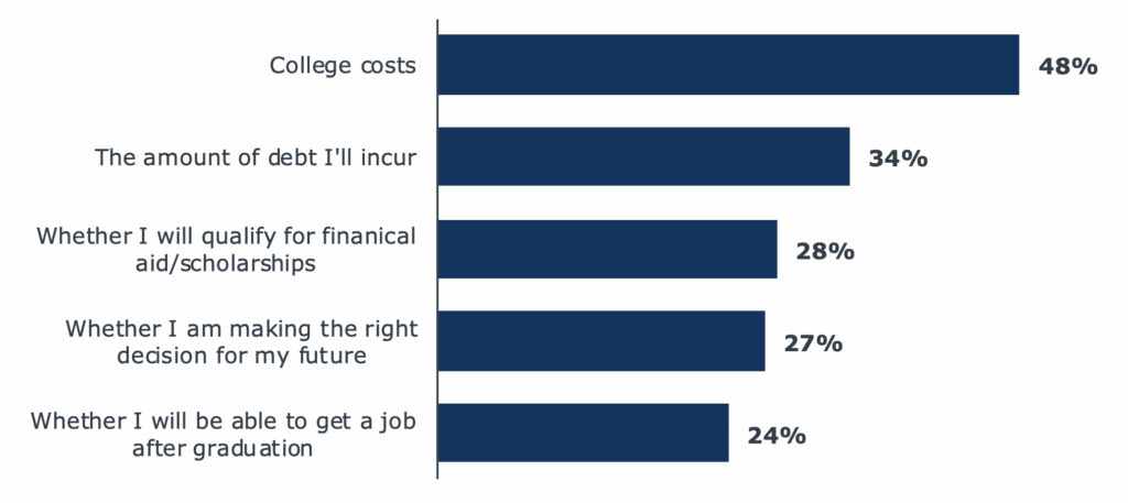 As you consider your future college experience, what makes you most concerned or nervous? (Top five responses, n=2,815)