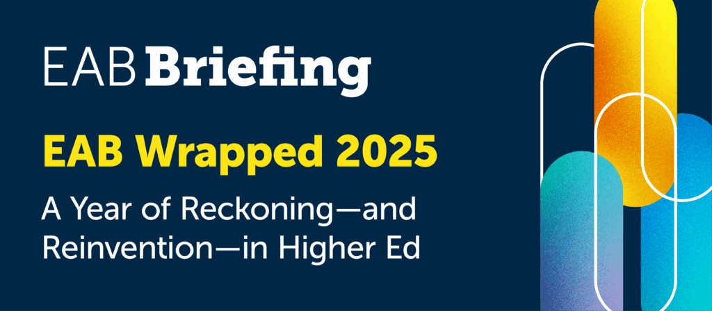 2025 was a year of big changes, and nowhere was that more apparent than in higher education. From shifting student expectations among both traditional-aged students and adult learners to an evolving policy environment, colleges and universities found themselves under pressure from all sides. Amid these challenges, EAB’s research became a go‑to for thousands of higher‑ed professionals seeking clarity, strategic direction, and actionable insight.