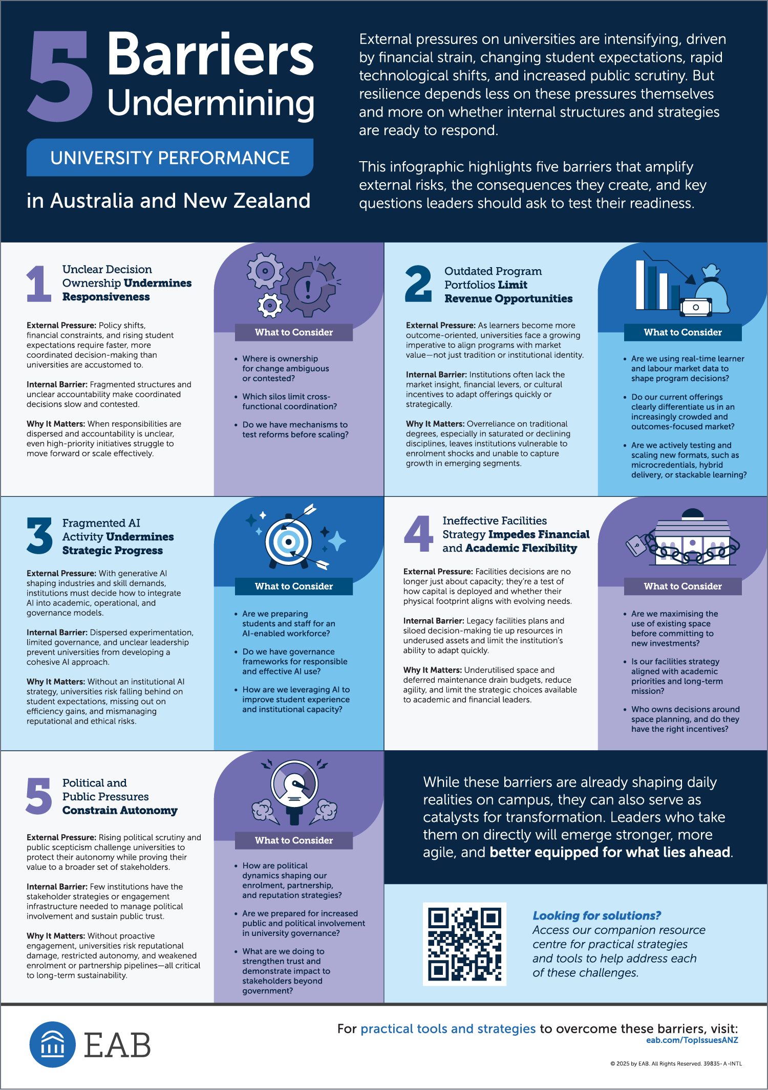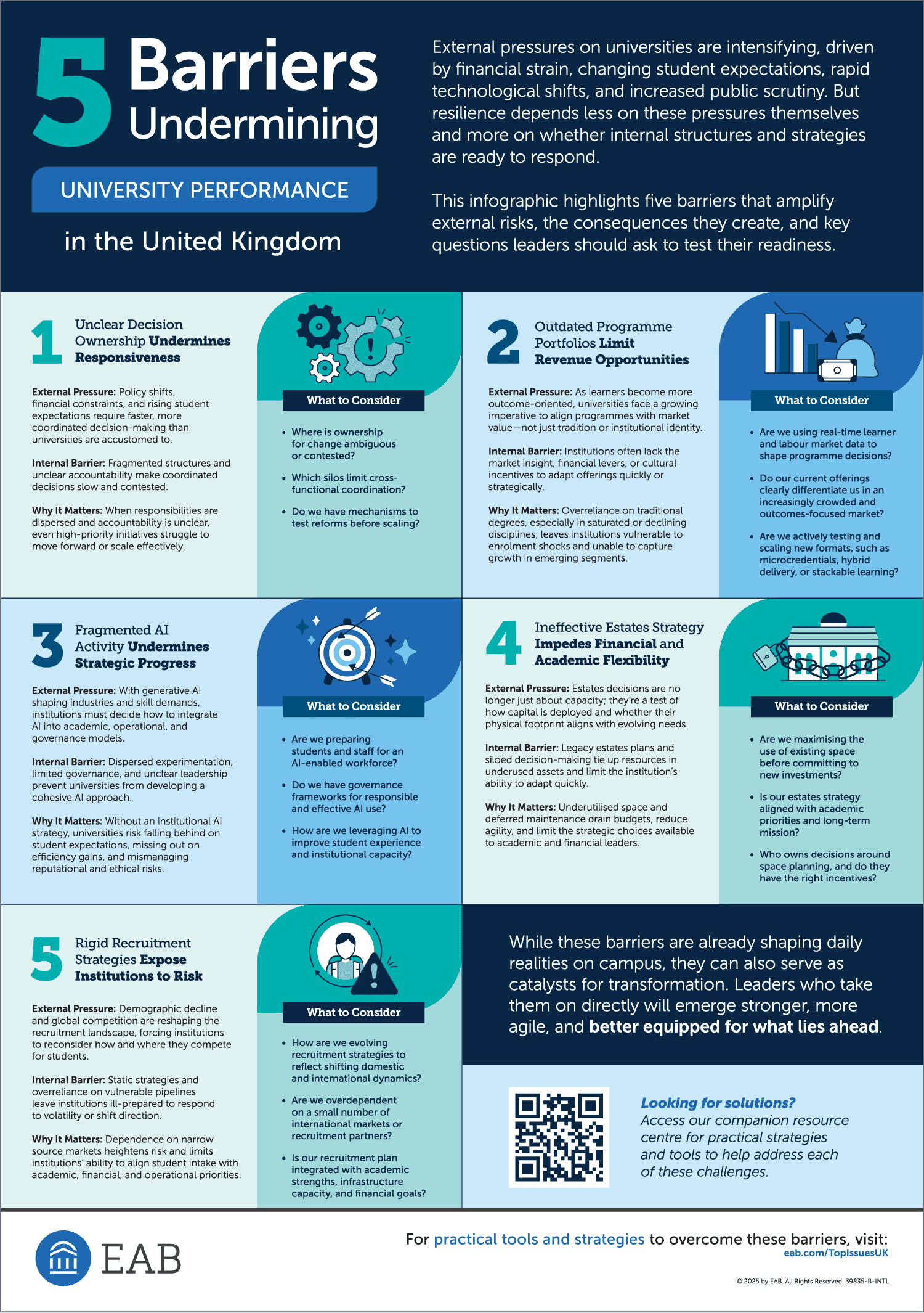 External pressures on universities are intensifying, driven by financial strain, changing student expectations, rapid technological shifts, and increased public scrutiny. But resilience depends less on these pressures themselves and more on whether internal structures and strategies are ready to respond.