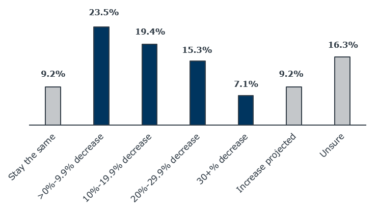 When EAB polled chief advancement officers about their FY2021 fundraising outlook, 65%—nearly two-thirds—said they were anticipating revenue declines. 41% reported expecting double-digit declines in the value of new gifts and commitments.