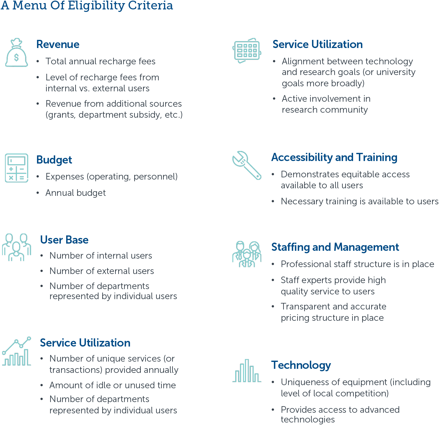 In 2011, Harris Lewin—Vice Chancellor for Research at University of California, Davis—convened a core facilities committee and charged members with two tasks. First, he asked the committee to gather information about the equipment and recharge activities for each campus core. Their survey included questions like, “What scientific efforts does the core support, and are these efforts intrinsically linked to strategic campus priorities?” and “What is the user base for the core?”